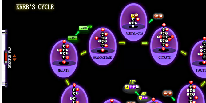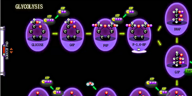 The video describes all the steps of Glycolysis and matrix reactions (pyruvate oxidation and Kreb's Cycle) with illustrations. Also covers ATP production, substrate-level phosphorylation, NAD+ and NADH.